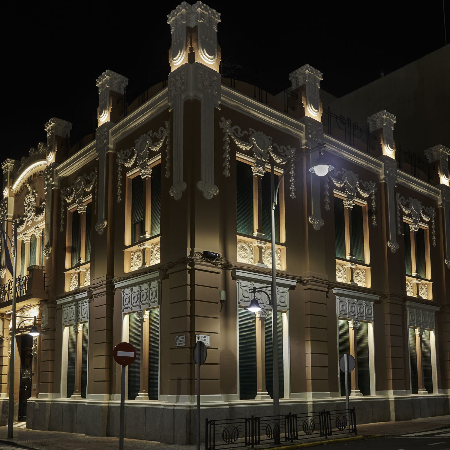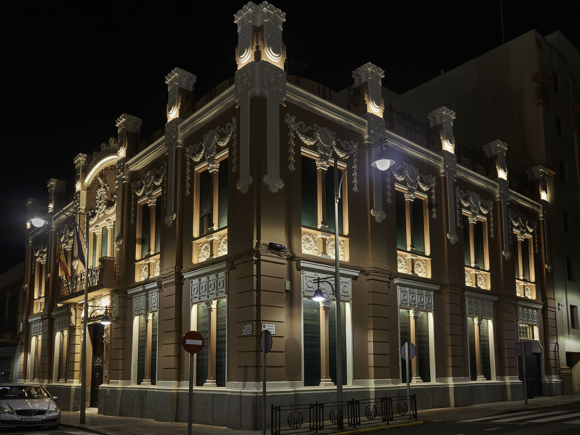 El estudio arquitectura Montero y Moreno, desde su fase de proyecto, contaron con el estudio de diseño de Iluminación DCI, para integrar, dentro de su proyecto de rehabilitación, la nueva iluminación monumental de este edificio, que forma parte del Conjunto Histórico Artístico de la Ciudad de Melilla, como Bien de interés cultural.